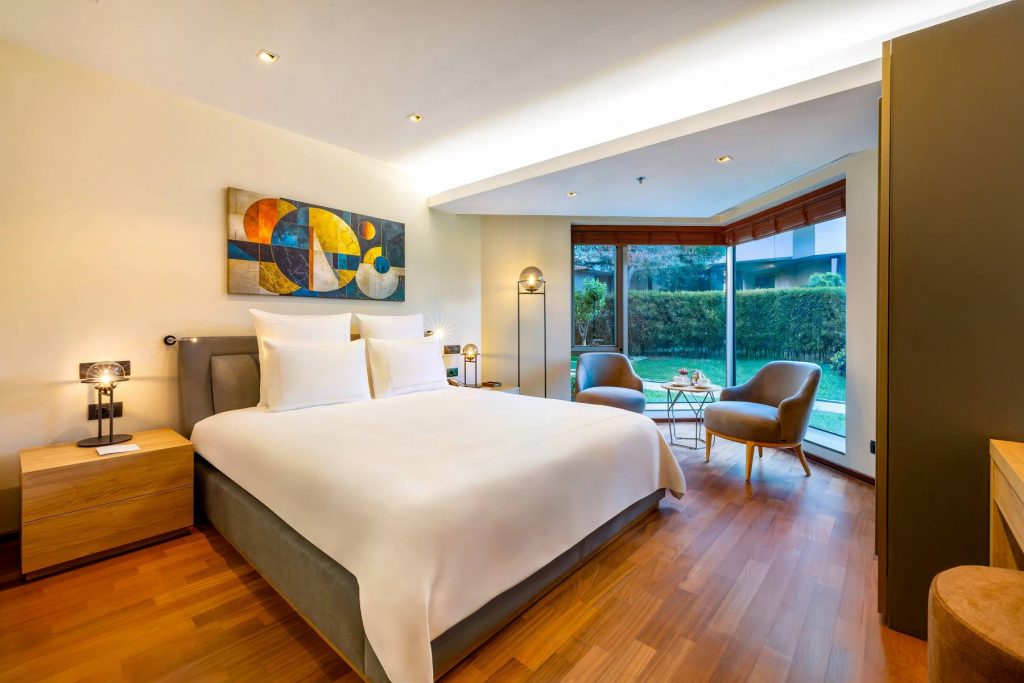 Zarafet ve lüks İsviçre tasarımı ve teknolojisini bir araya getiren Deluxe Aile Süiti Havuz Kenarı. Süitte, Swissôtel The Bosphorus’un, Dolmabahçe Sarayı’na bitişik İstanbul’un 65 dönümlük bahçelerinin manzarasını sunan nefes kesici, tam pencereler bulunmaktadır.